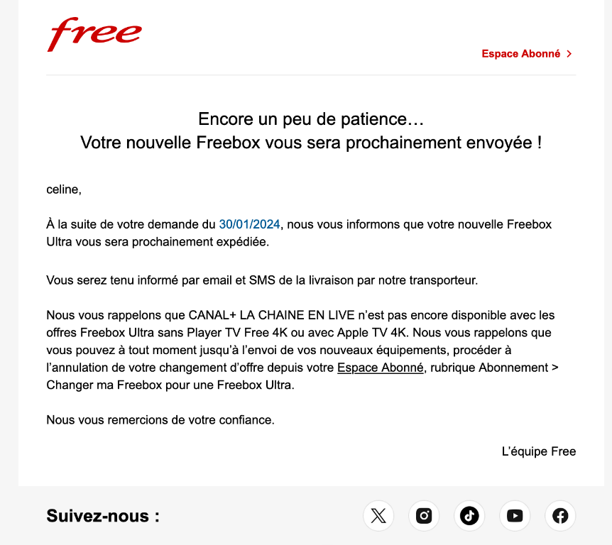étrange, j'ai contacté l’assistance Free au sujet des délais de livraison des pockets wifi et ils m'ont dit qu'ils allaient faire une remontée et me tenir informé.