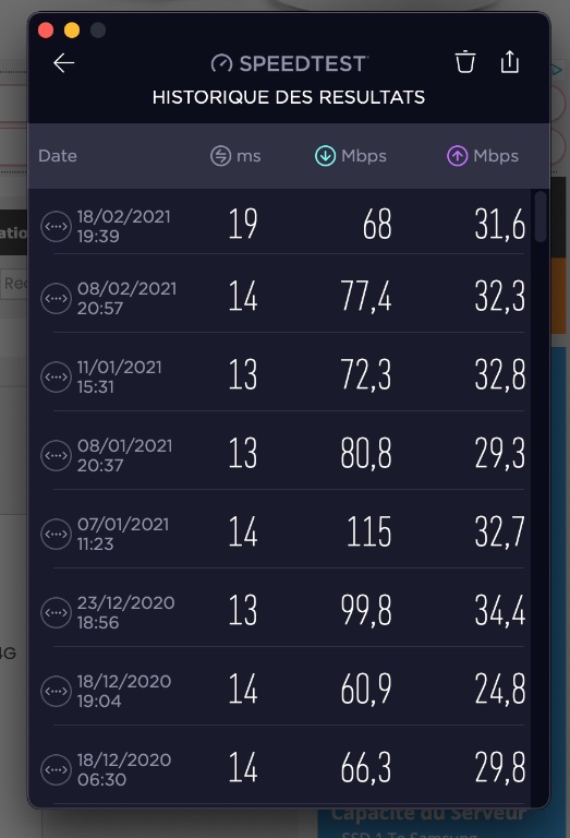 Avec ces résultats mes débits sont moyens (50 Mbs en down, 10 en up, 40 ms de latence).