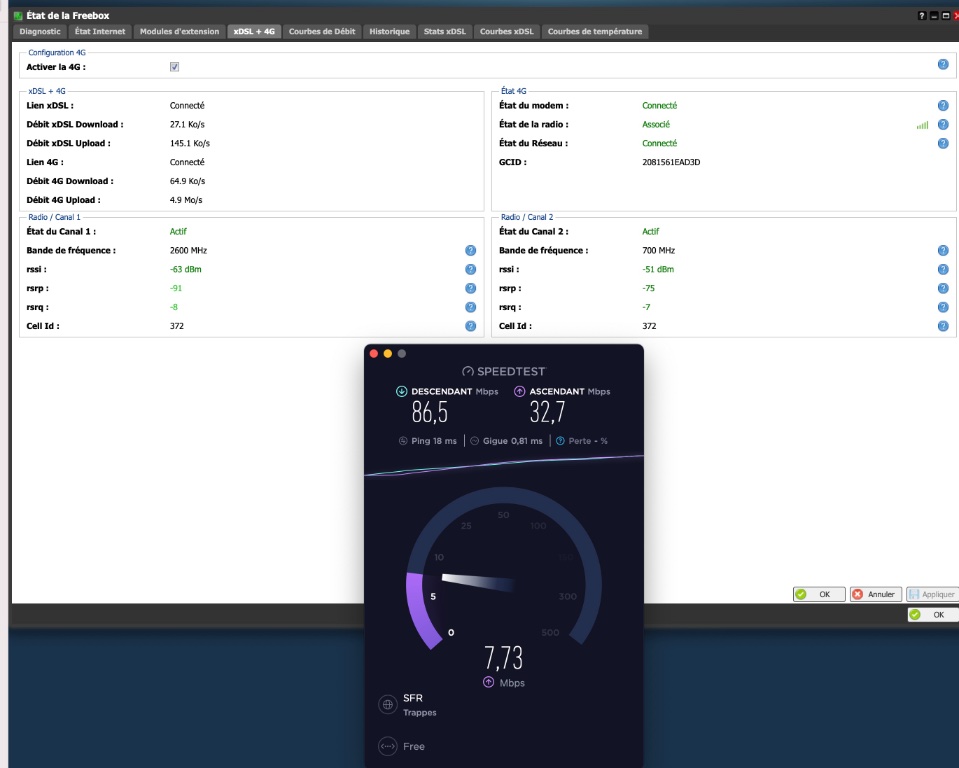 J'ai récupéré une delta S car très loin d'un DSLAM, mais pas loin du tout d'une antenne 4G Free.