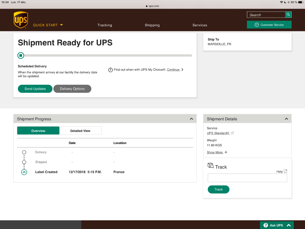 > > Plutôt rapide une chose m’intrigue, sur le suivi UPS, le poid du colis est de