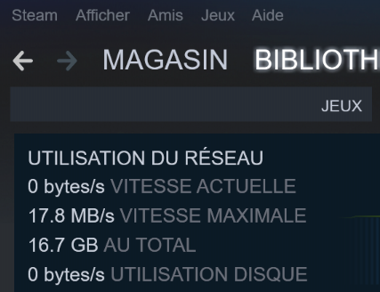 Sur Steam j'ai télécharger au maximum à 17,4mo/s.