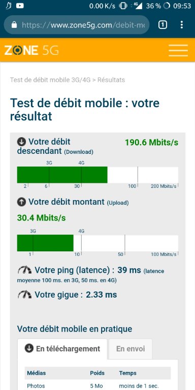 J'ai une réception 4G d'environ 27 Mbs sur mon smartphone.
