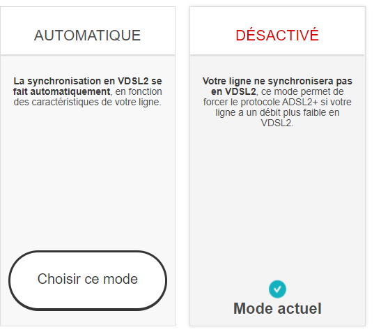 Sur les paramètres de mon compte ,ma synchro est bien en vdsl2,et en mode automatique.