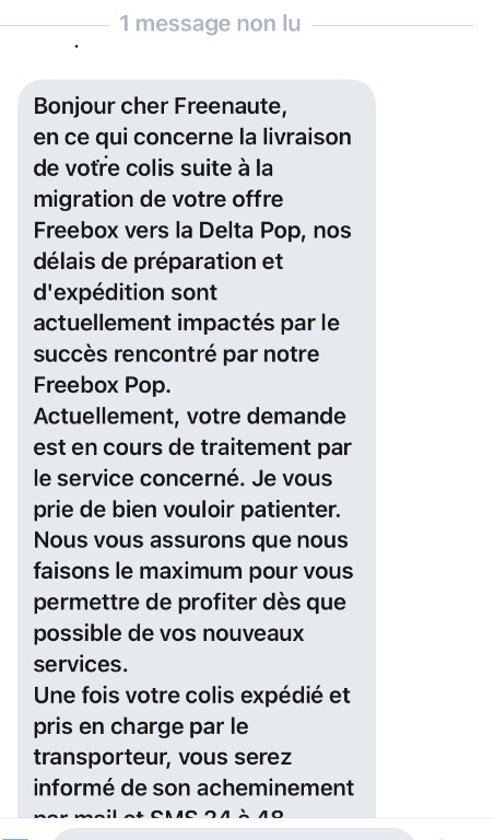 Avancer le fait d'un problème de stock pour la box delta n'est pas crédible, même si tout laisse le croire... comme l'assure le support free sans plus d'info.