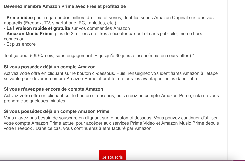 Si c'est ça, à mon avis, tu as juste souscris Amazon Prime à 5,99€ par mois. Quand tu recevras ta Delta, il faudra que tu le résilies pour lier Amazon Prime à ton abonnement Freebox Delta.