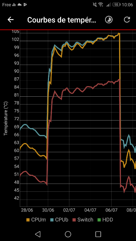 • Les petites chutes pendant la surchauffe sont due au plantage de la box XD