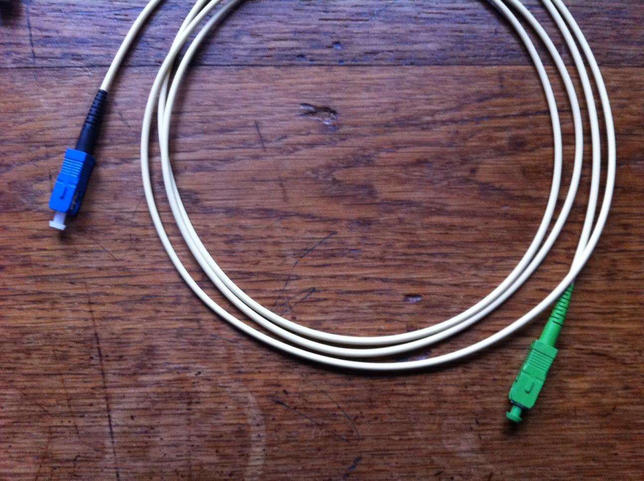 On peut, mais ça marche théoriquement moins bien (ça ajoute des pertes). La différence provient juste du polissage du bout du connecteur, le reste du connecteur étant identique (SC).Slum Cat a écrit : 2. Sur la photo de la jarretière, on a l'impression que les connecteurs bleu et vert ont la même forme, mais je pense que non : tu ne peux pas les intervertir, je suppose.