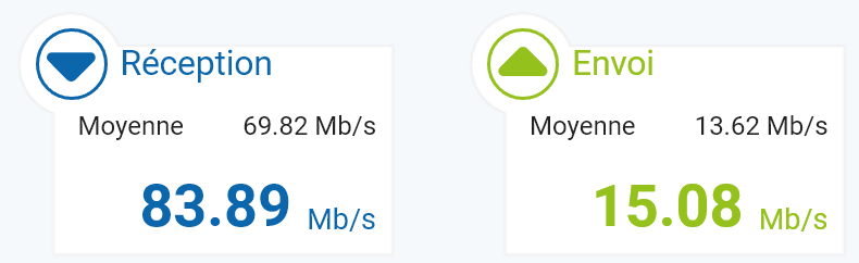 J'avais environ 30 Mb/s en download avec les antennes internes et un seul canal 4G (1800) s'activait (rarement le deuxième).