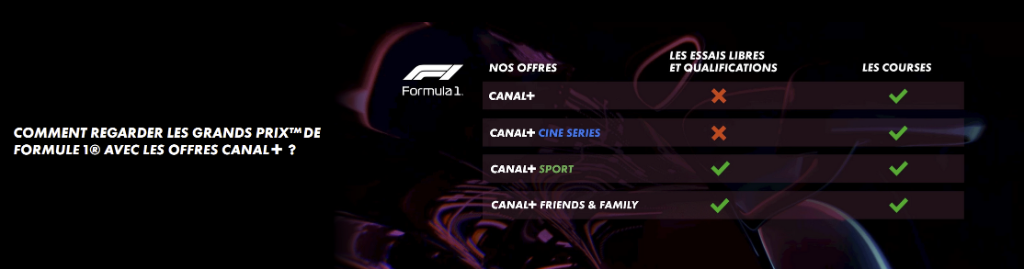 Si tu dit ça en espérant voir les courses de F1 sur la chaine canal incluse dans l'offre. Je peux te dire que c'est hélas un doux rêve. Les courses de F1 sont en grande partie diffusés sur canal plus sport , sport360