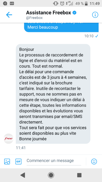 bonjour je voudrais savoir où en est mon raccordement par france télécom j'ai deja recu la freebox delta avec pack sécurité et disque dur le 12/12/2018 je suis un nouvel abonné free sans portabilité depuis orange je n'ai plus internet depuis le 11/12/2018