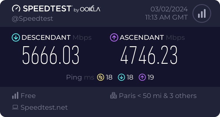 Au final, j'ai un débit filaire de 935Mbps (UP/Down) et un débit Wifi (directement sur la box) qui est catastrophique... je ne dépasse même pas les 35Mbps!