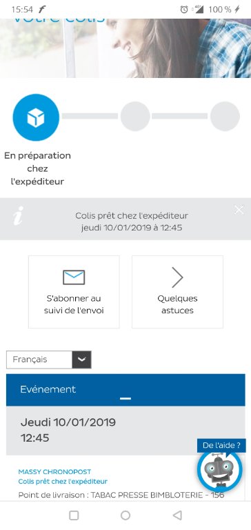 Étape 3: 29/01/2019 - SMS Chronopost à 13h59