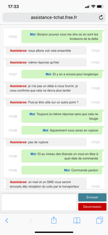 Ceci après une première commande le 4 décembre et plusieurs appels au service tchat....
