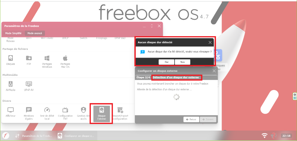 connecté au Freebox Server ,,évident dans freebox OS /paramètre/disque dur externe ,