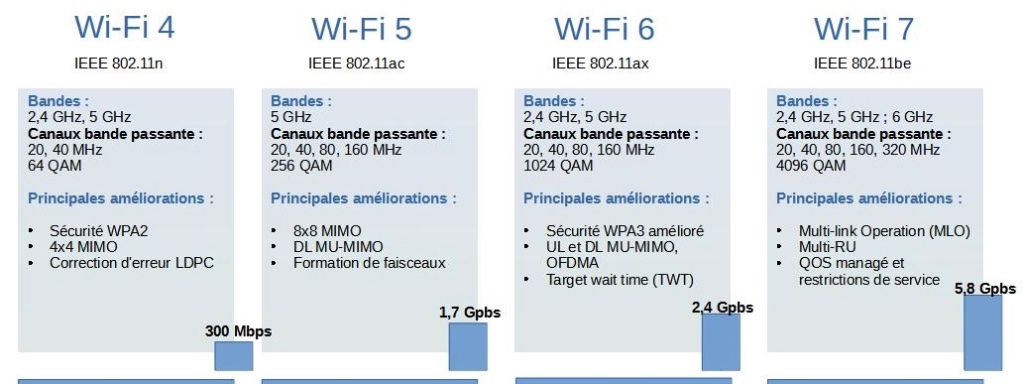 La bande 6GHz est disponible à partir du Wifi 6E. Le 6 fonctionne en 2.4 & 5GHz.