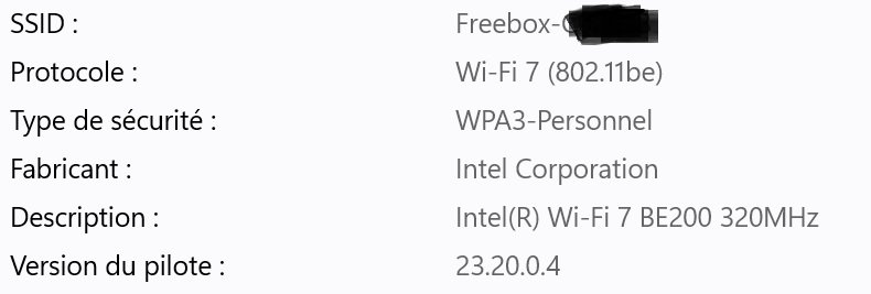 > Je viens de me connecter en Wifi 7 avec mon PC sur la box Free Ultra, ainsi